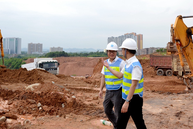 項目負責人在梧州市第十六中學項目場地開展現場管理工作