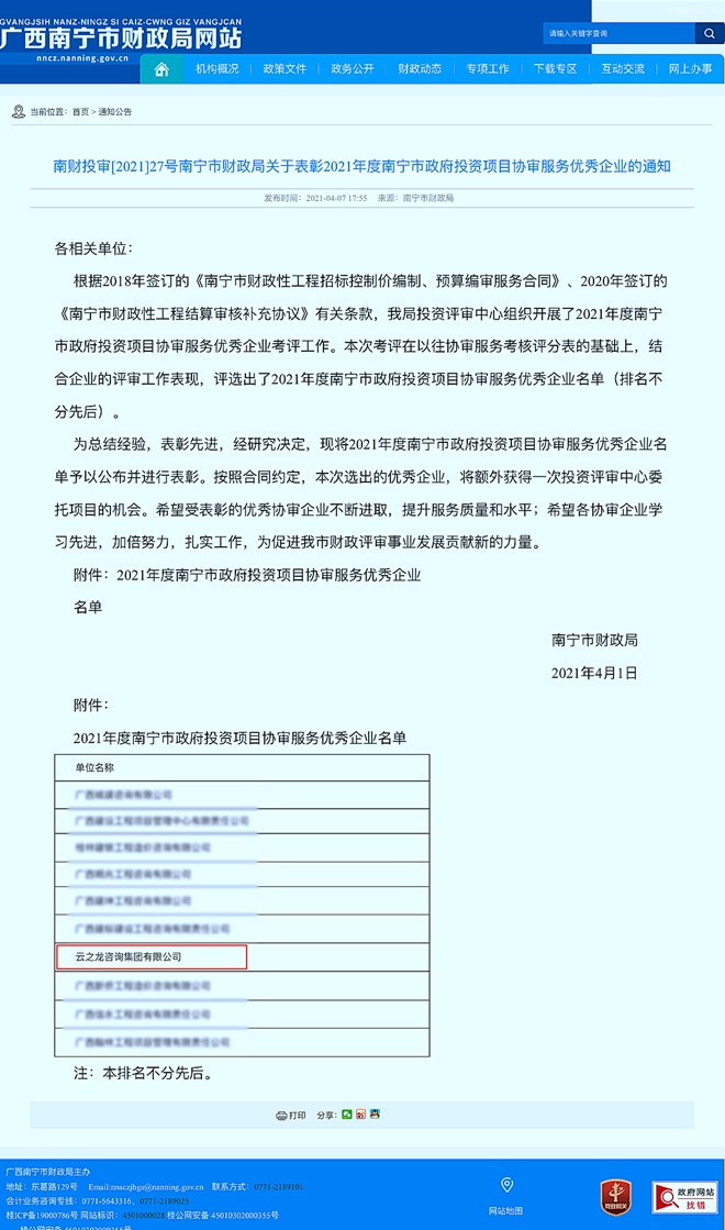 云之龍咨詢集團榮獲“2021年度南寧市政府投資項目協(xié)審服務(wù)優(yōu)秀企業(yè)”