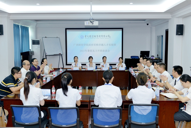 當(dāng)天,廣西財經(jīng)學(xué)院財政與公共管理學(xué)院院長蒙強(qiáng)、副院長藍(lán)相潔、系主任宋哲、教師王英一行來到云之龍集團(tuán),與實習(xí)生共同召開暑期實習(xí)開班座談會。云之龍集團(tuán)總裁王鐿霖、副總裁莫國華以及云之龍學(xué)校校長韋明劍等人參加會議。