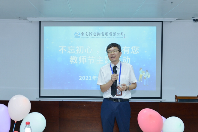 2021年9月10日,教師節當天,云之龍集團總裁王鐿霖在教師節活動上為優秀講師們頒發節日紀念品,感謝講師們的無私奉獻。