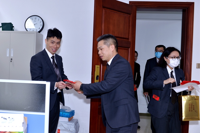 2022年2月7日,云之龍咨詢集團總裁王鐿霖帶領集團高層領導到各個部門給大家拜年,派送新年開工紅包。王鐿霖總裁叮囑大家做好疫情防控工作,關注自身身體健康狀況。她詳細了解各個部門人員的到崗情況,勉勵大家鉚足干勁,以最高的效率和最佳的姿態投入到工作當中,譜寫集團高質量發展新篇章。