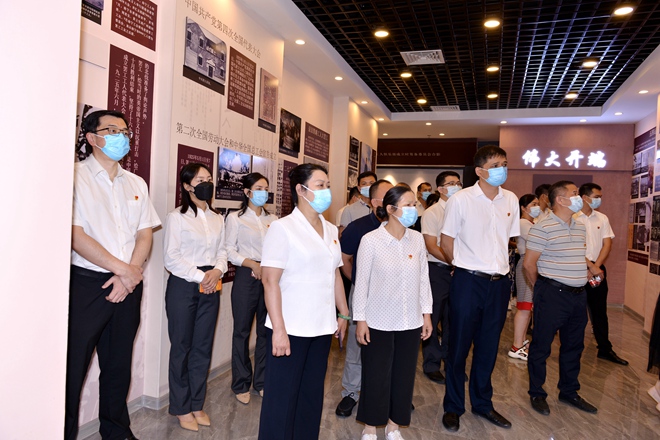 當天,黨員同志們在講解員的帶領下參觀體驗館一樓展陳大廳,了解學習1919年至1949年間中國共產黨黨史和中國工運史的重要歷史交匯事件,通過文字、圖片、視頻等重溫了黨史、工運史的光輝歷程。