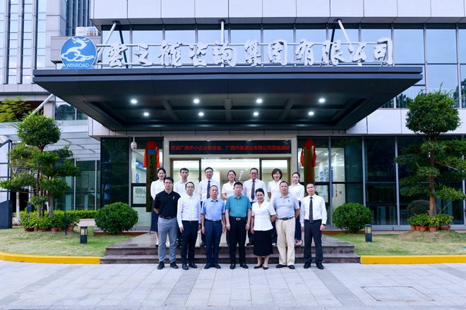 此次調(diào)研學習活動是在自治區(qū)工信行業(yè)聯(lián)合黨支部書記、廣西中小企業(yè)聯(lián)合會執(zhí)行會長張杰的牽頭下,河池市人民政府工業(yè)振興特派員、廣西丹泉酒業(yè)營銷公司副總經(jīng)理覃康平,廣西丹泉酒業(yè)集團副總經(jīng)理王豐全等一行到云之龍參觀調(diào)研。云之龍咨詢集團總裁王鐿霖,副總裁莫國華、韋明劍一同參與調(diào)研會議。
