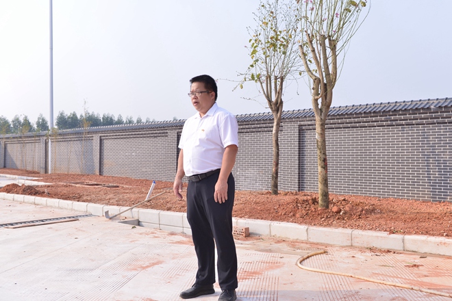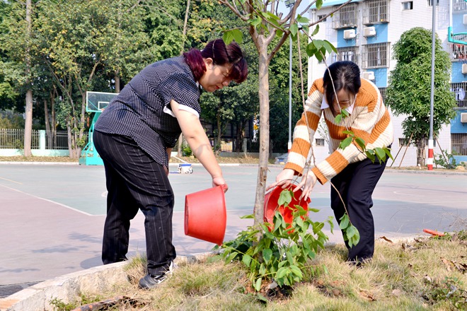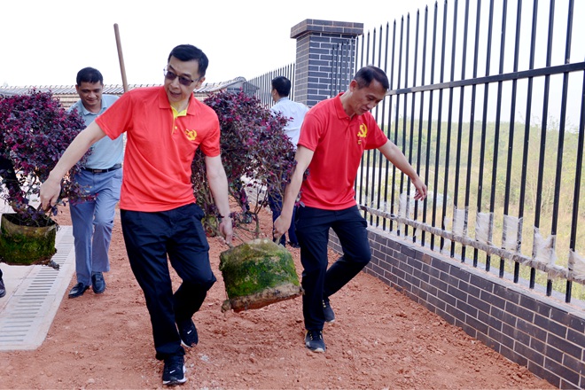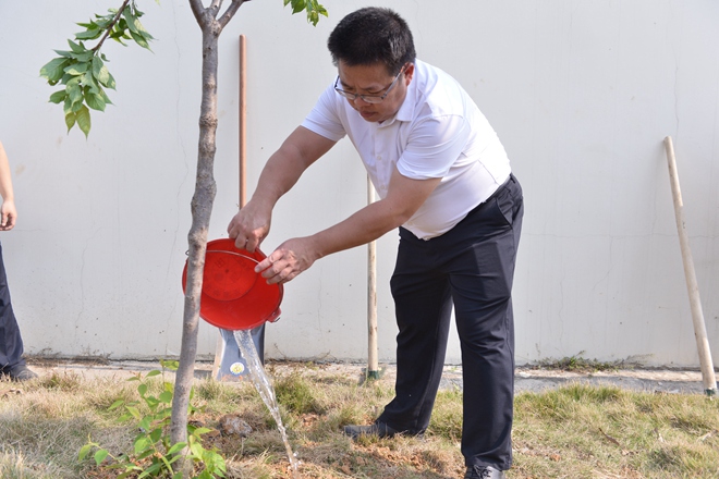 南寧路橋公司黨總支部書(shū)記、董事長(zhǎng)韋敏生書(shū)記為樹(shù)苗澆水