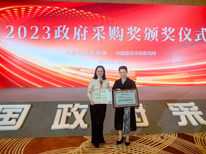 會議對在2023年度政府采購實踐中涌現出的先進集體和優秀個人進行頒獎,云之龍咨詢集團名列其中,再次獲得由中國政府采購報、中國政府采購新聞網頒發的優秀咨詢機構獎,這是云之龍連續第五年榮獲該獎項。