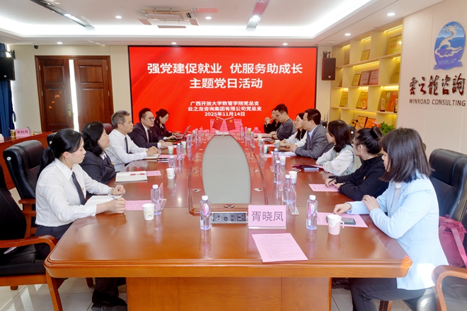 為深入貫徹黨的二十屆四中全會精神,推動黨建工作與育人就業深度融合,2025年11月14日,云之龍咨詢集團有限公司黨總支與廣西開放大學(廣西信息職業技術學院)數字經濟與管理學院黨總支聯合開展“強黨建促就業,優服務助成長”主題黨日活動,以高質量黨建引領人才培育與就業服務,開啟校企協同發展新篇章。