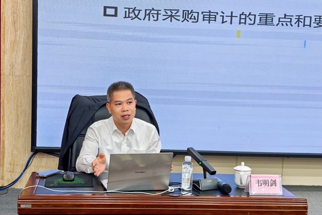 培訓內容涵蓋政府采購審計重點及監督要點、采購人應重點防范的風險點、采購需求調查案例、采購驗收引發的風險及應對策略等內容。韋明劍老師還重點分享了委托第三方咨詢機構進行采購需求編制及履約驗收帶來的實際成效。