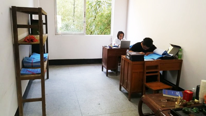 陳思維與團隊成員在項目工地辦公室進行日常工作
